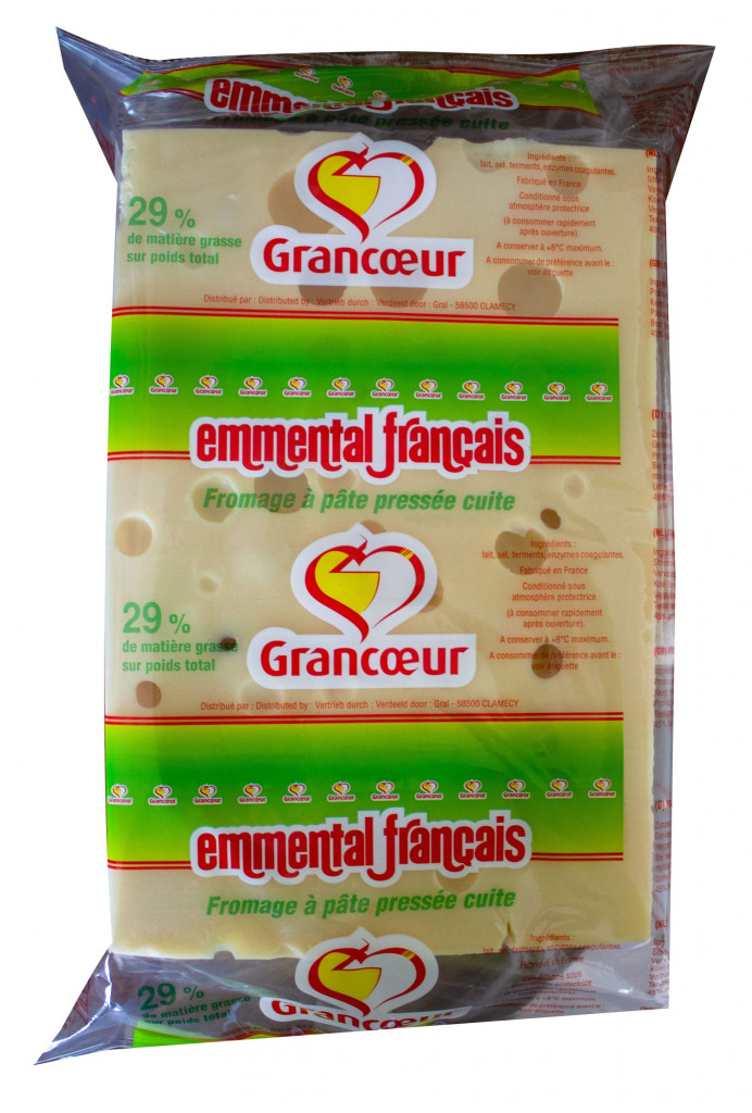 Emmental Français bloc 2/3 kg Grancoeur REF : 3 25055 000561 2 Accueil > Produits > Emmental Français bloc 2/3 kg Grancoeur Emmental bloc, fromage à pâte pressée cuite Trouver un distributeur Voir le site de la marque* *Vous serez redirigé vers le site internet de la marque de ce produit.